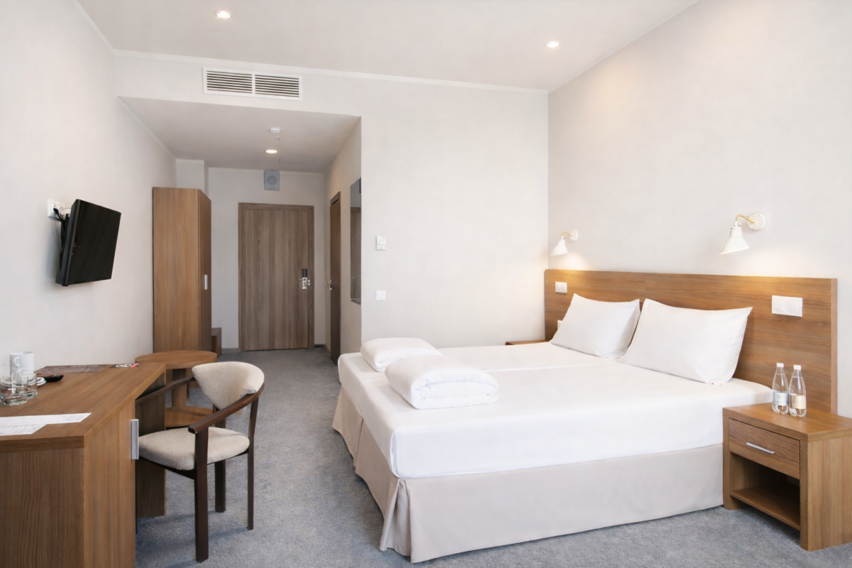 Тип кровати – две односпальные кровати, которые по системе твин возможно объединить в двуспальную.