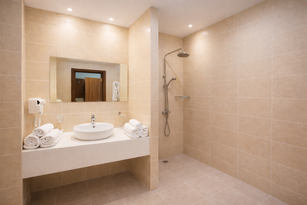 Ванная комната оснащена душем.