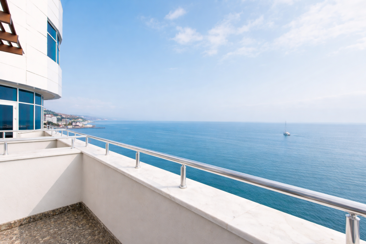 Увеличенный по площади однокомнатный номер с видом на море и с просторным балконом.
