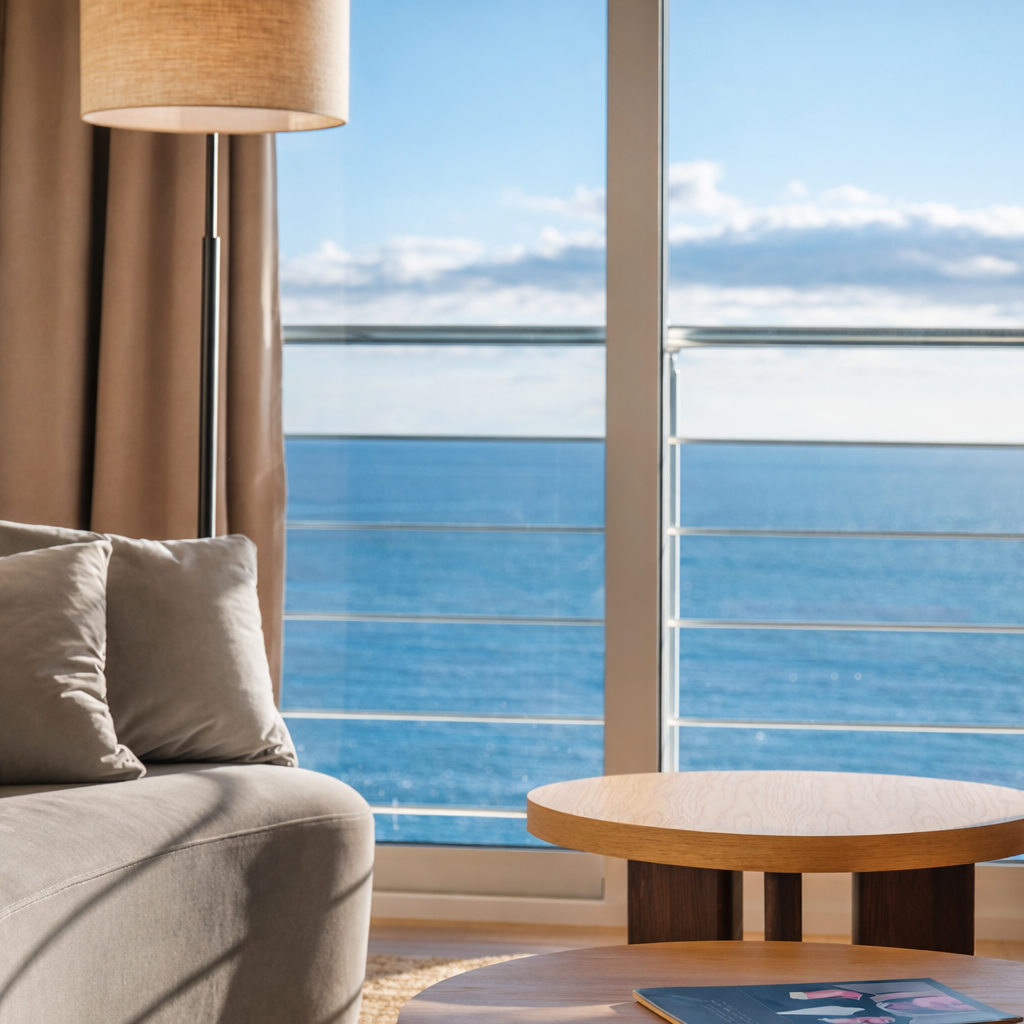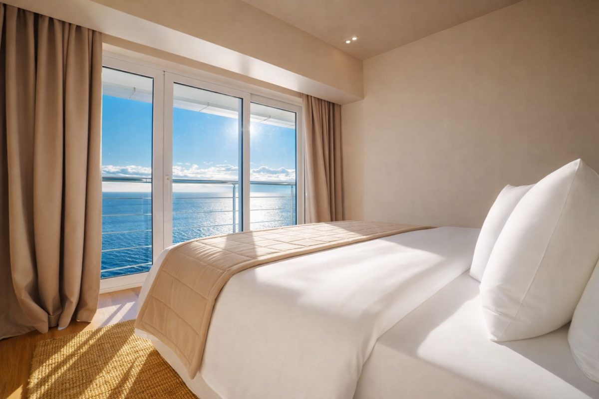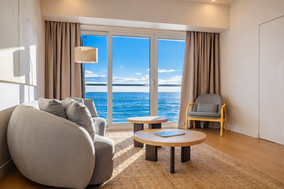 Трехкомнатный номер с панорамным видом на бескрайнее море.