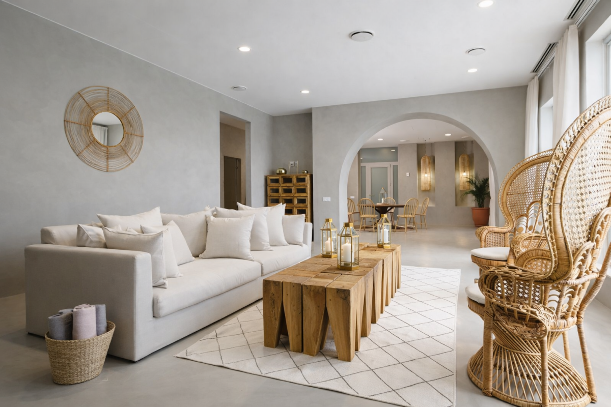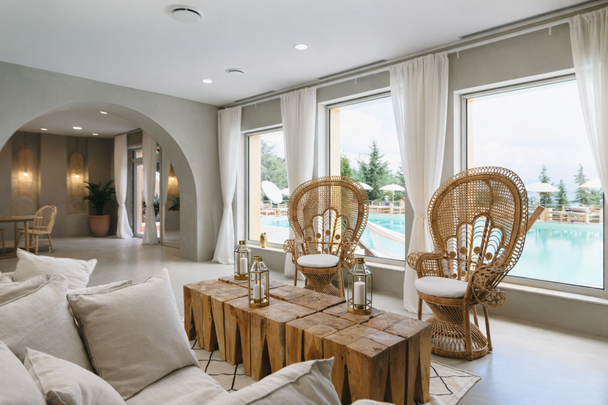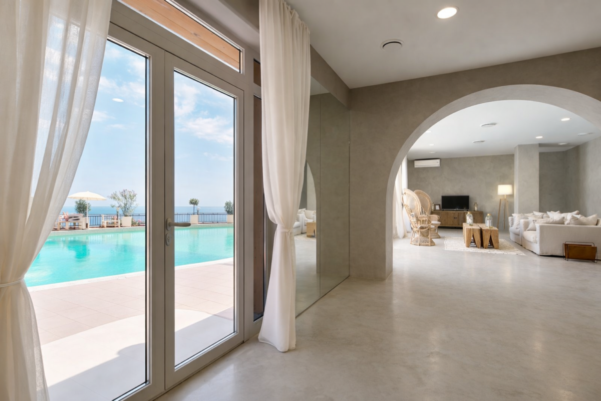 Трехкомнатный номер площадью 110 м² предлагает роскошное пространство для отдыха с панорамным видом на море и бассейн. Номер состоит из просторной гостиной, которая служит центральной зоной для отдыха и общения, и двух отдельных спален, каждая из которых оборудована собственной ванной комнатой с душевой кабиной. Большие окна наполняют помещение естественным светом и открывают захватывающие виды, создавая ощущение гармонии с природой.