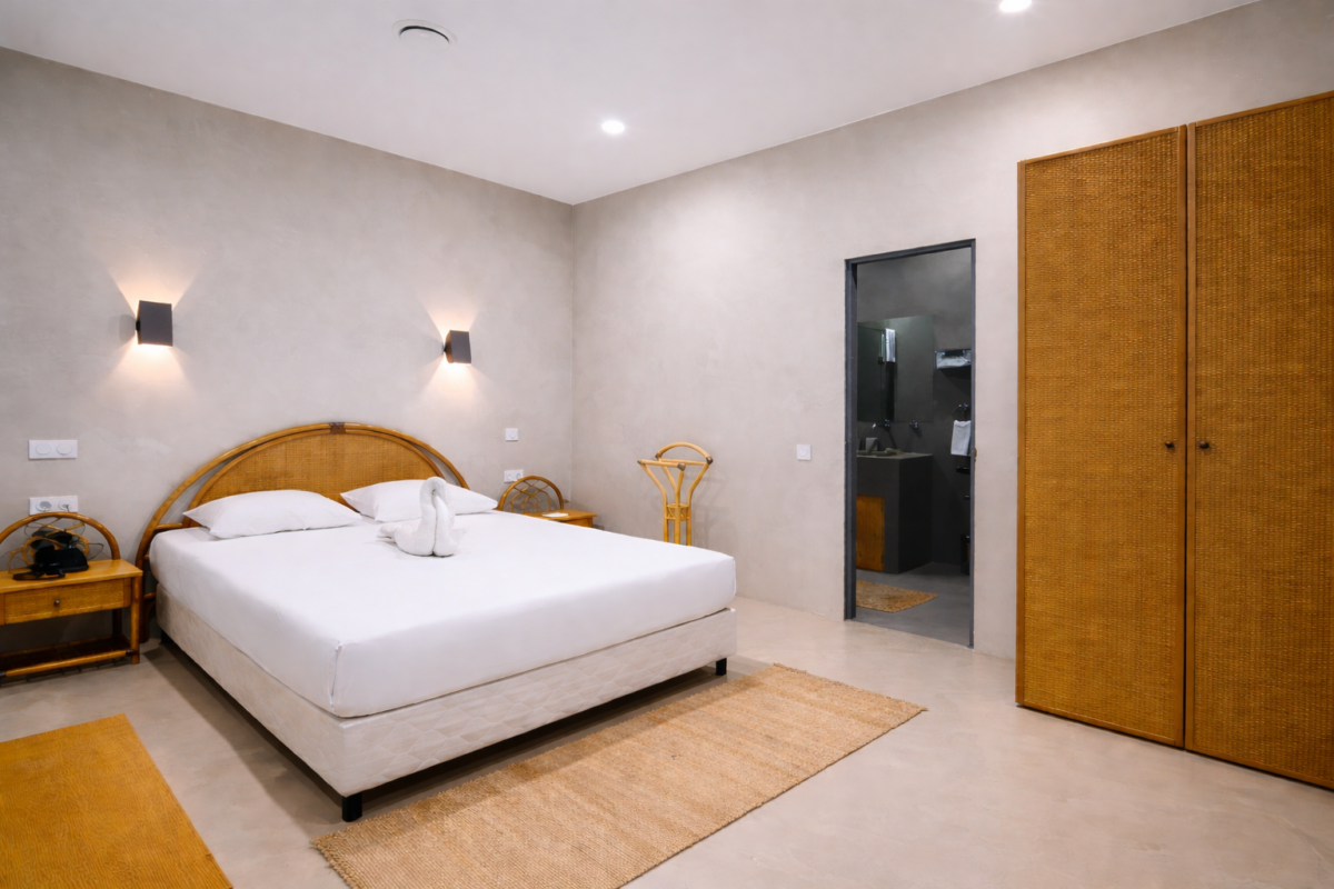Интерьер номера выполнен в эксклюзивном дизайне с использованием элегантной мебели и спокойной цветовой гаммы, что способствует расслаблению и уюту. Внимание к деталям и высокое качество отделки подчеркивают статусность апартаментов. Этот номер идеально подходит для тех, кто ценит комфорт, приватность и эстетику, предлагая все необходимое для незабываемого отдыха.