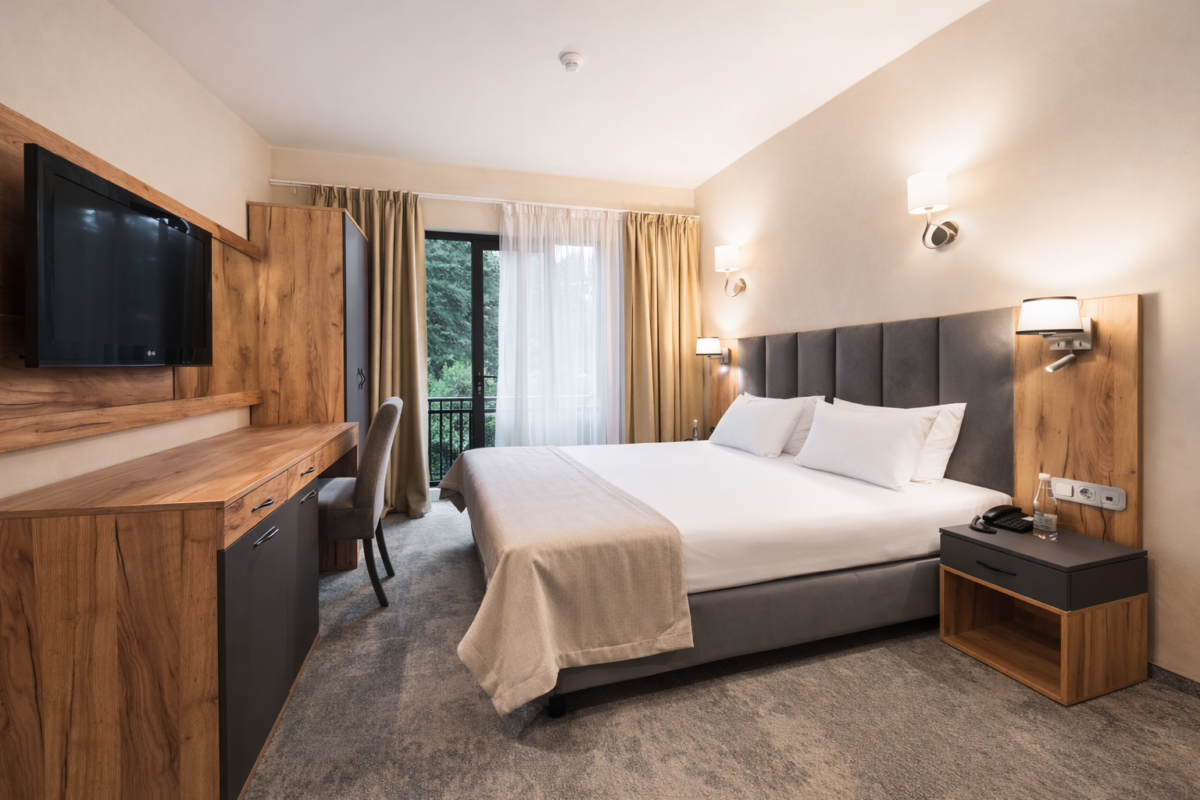 Однокомнатный номер общей площадью от 15 м² до 18 м² с видом на парк. Тип кровати – двуспальная. Номер с французским балконом или без балкона. Ванная комната оснащена душевой кабиной.