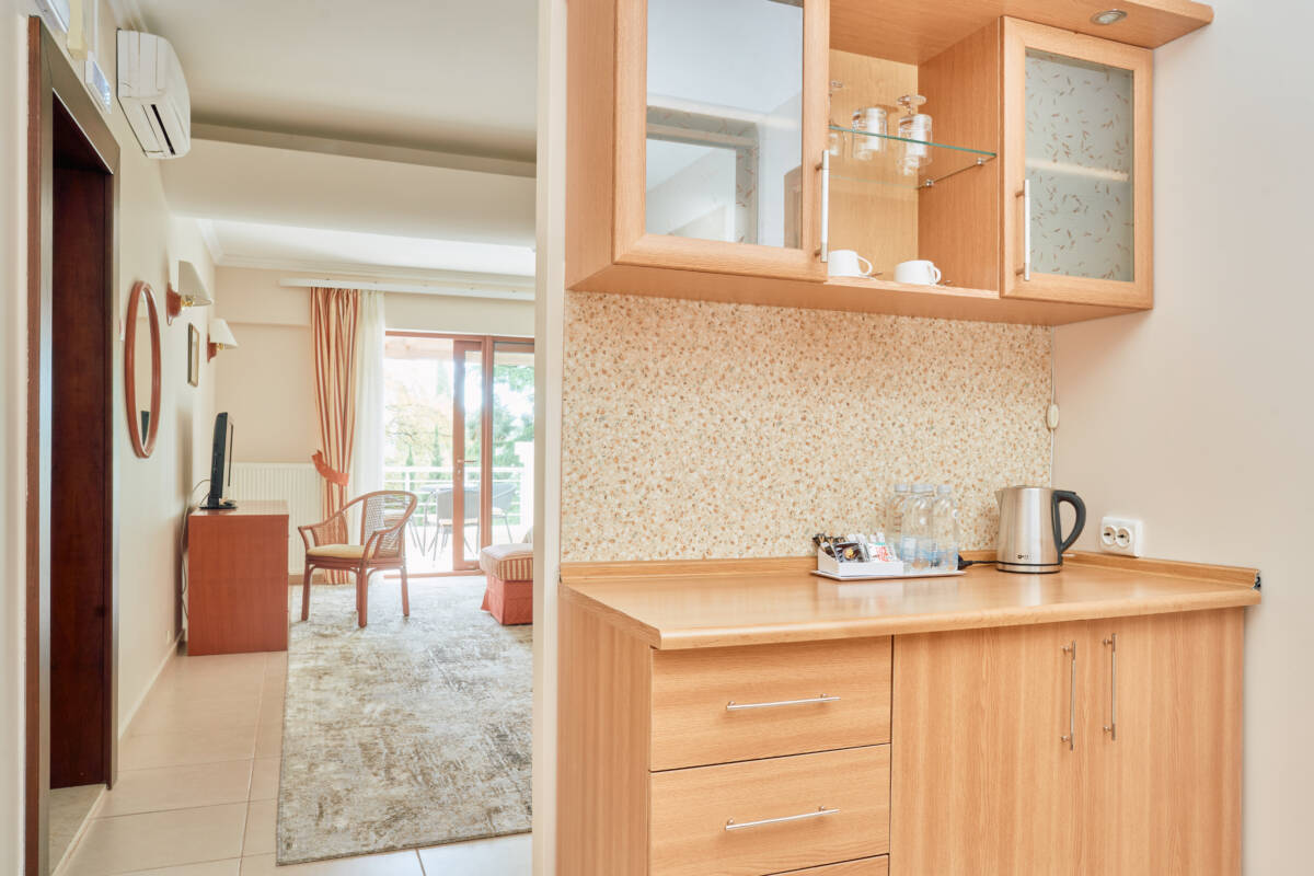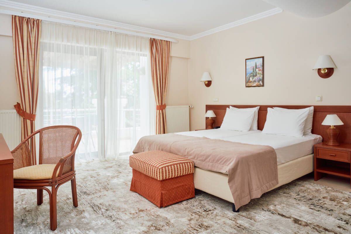 Просторный однокомнатный номер с балконом и видом на парк. Общая площадь номера составляет 43 м². Номер имеет гостиную и спальную зону. Ванная комната оснащена ванной. Тип кровати – две односпальные кровати, которые по системе твин возможно объединить в двуспальную. В номере установлен раскладной диван.