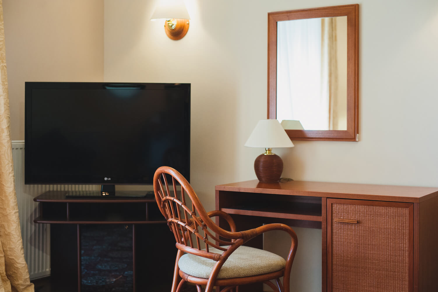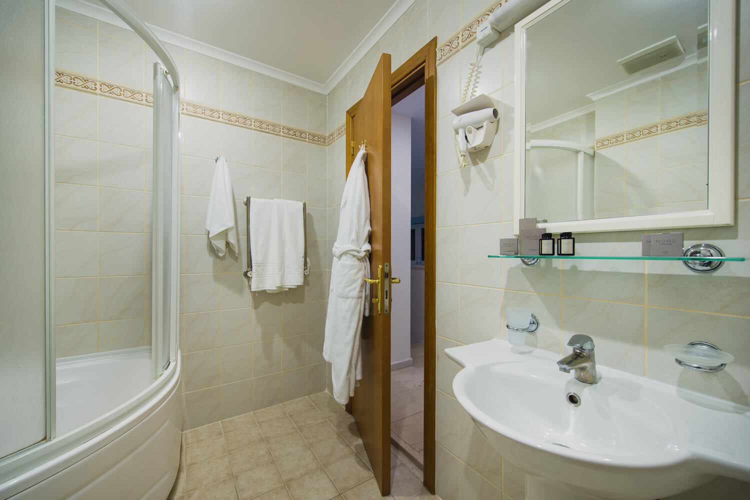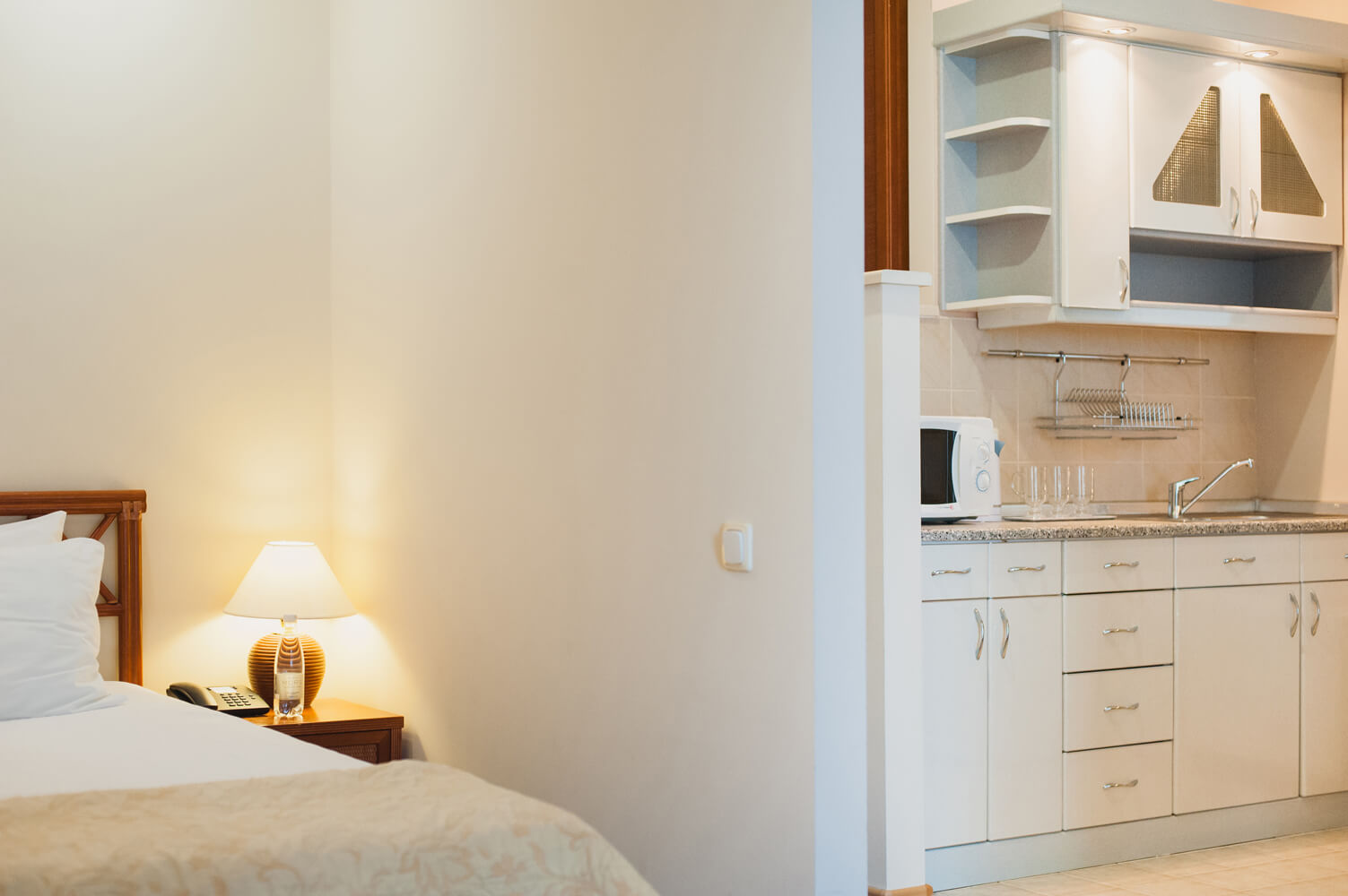 Просторный однокомнатный номер общей площадью 40 м² с балконом и видом на море через кипарисы. Номер разделен на зоны: гостиную и спальную. Тип кровати – двуспальная. В гостиной установлено раскладное кресло 80х190. Ванная комната оснащена ванной.