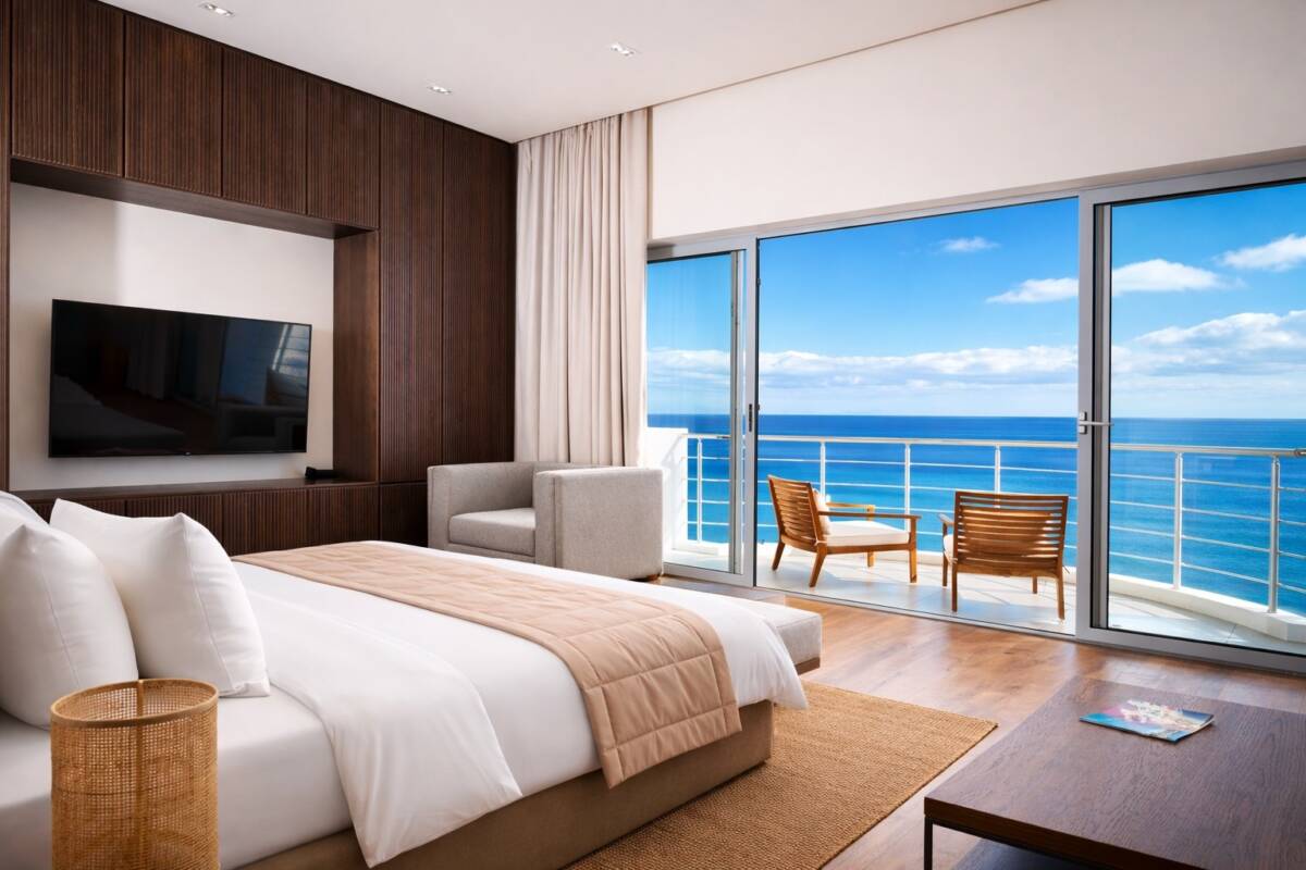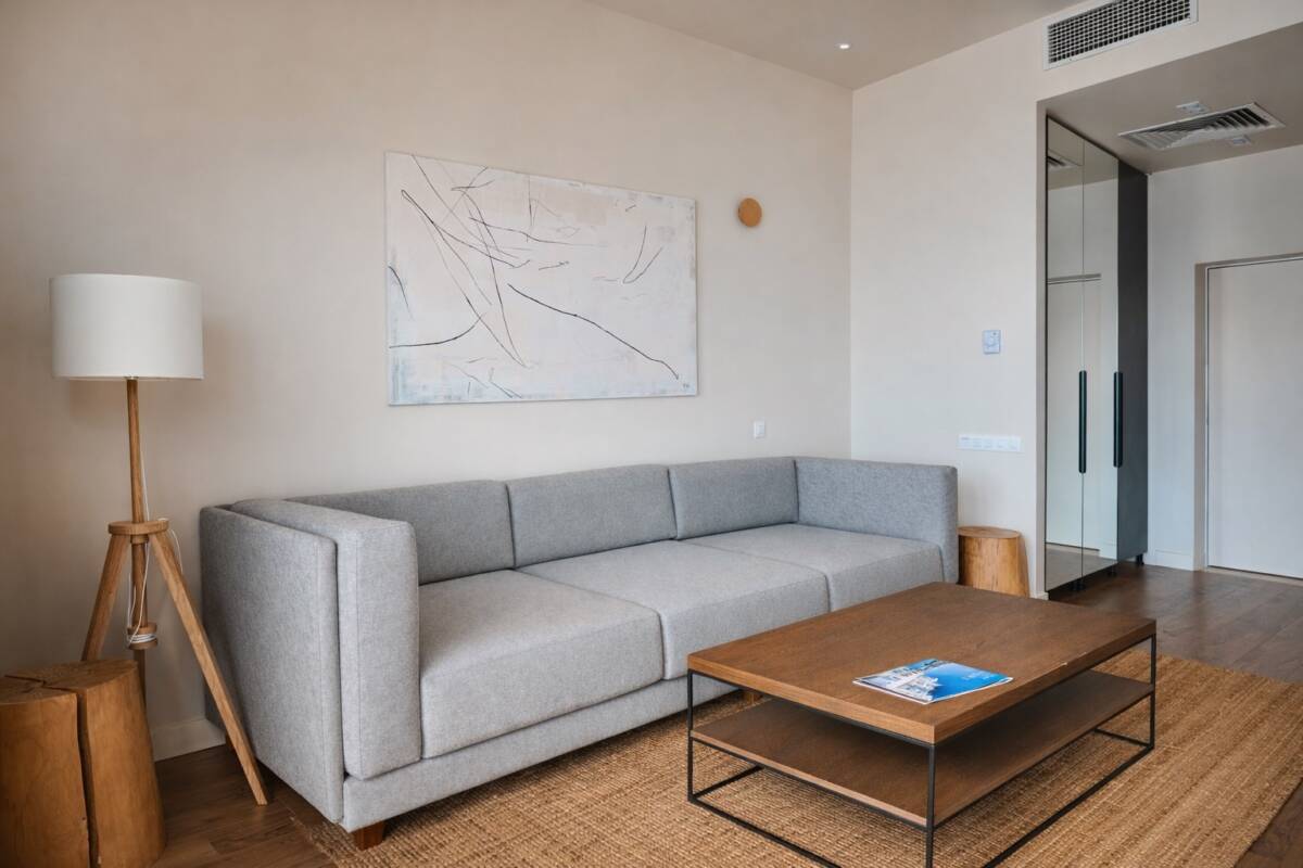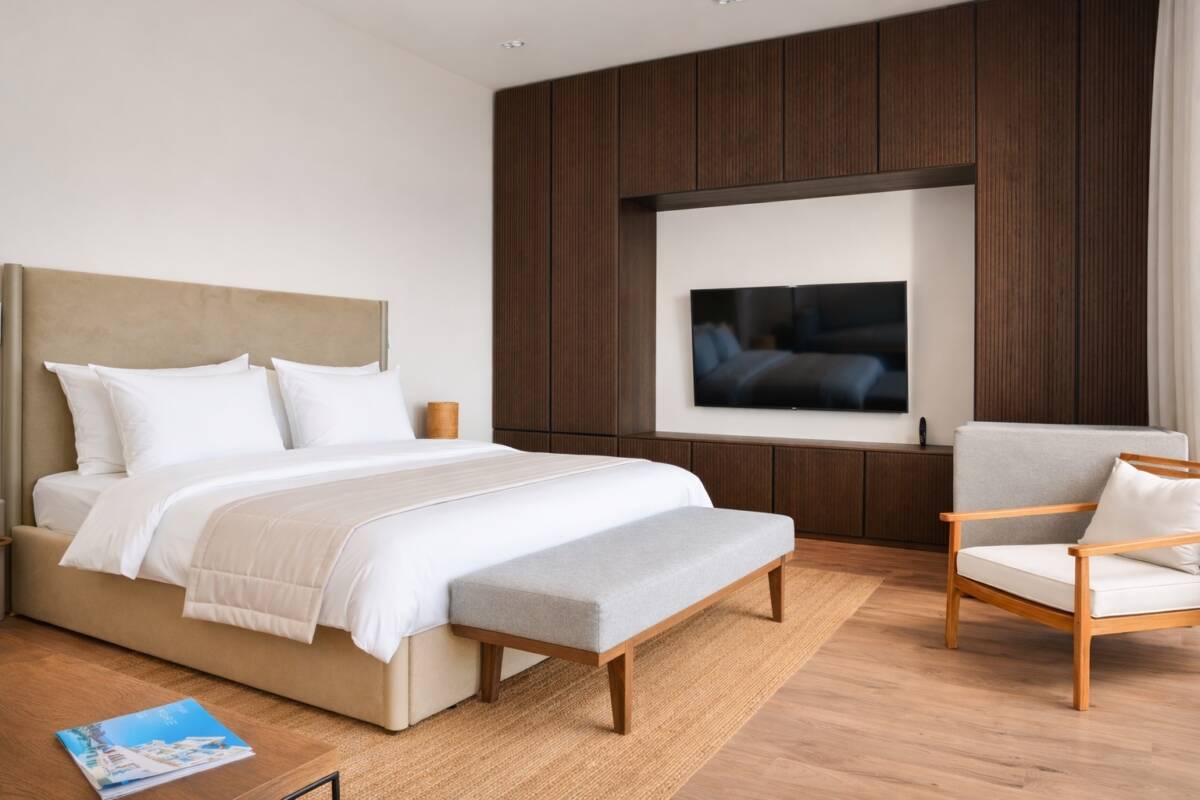 Однокомнатный номер с панорамными окнами от пола до потолка, которые дают насладиться видом на море в полной мере. Площадь номера составляет 45 м². Пространство выполнено в пастельных тонах, оно наполнено воздухом и светом. Весь номер- это только экологически чистые текстуры: дерево, хлопок. Чистые линии и теплые цвета, минималистичный интерьер, невероятно стильные аксессуары в балийском стиле. Ванная комната оснащена душевой кабиной.